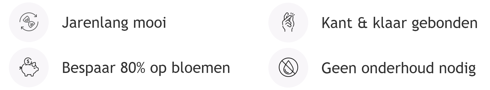 - Je bespaart honderden euro's per jaar t.o.v. verse bloemen